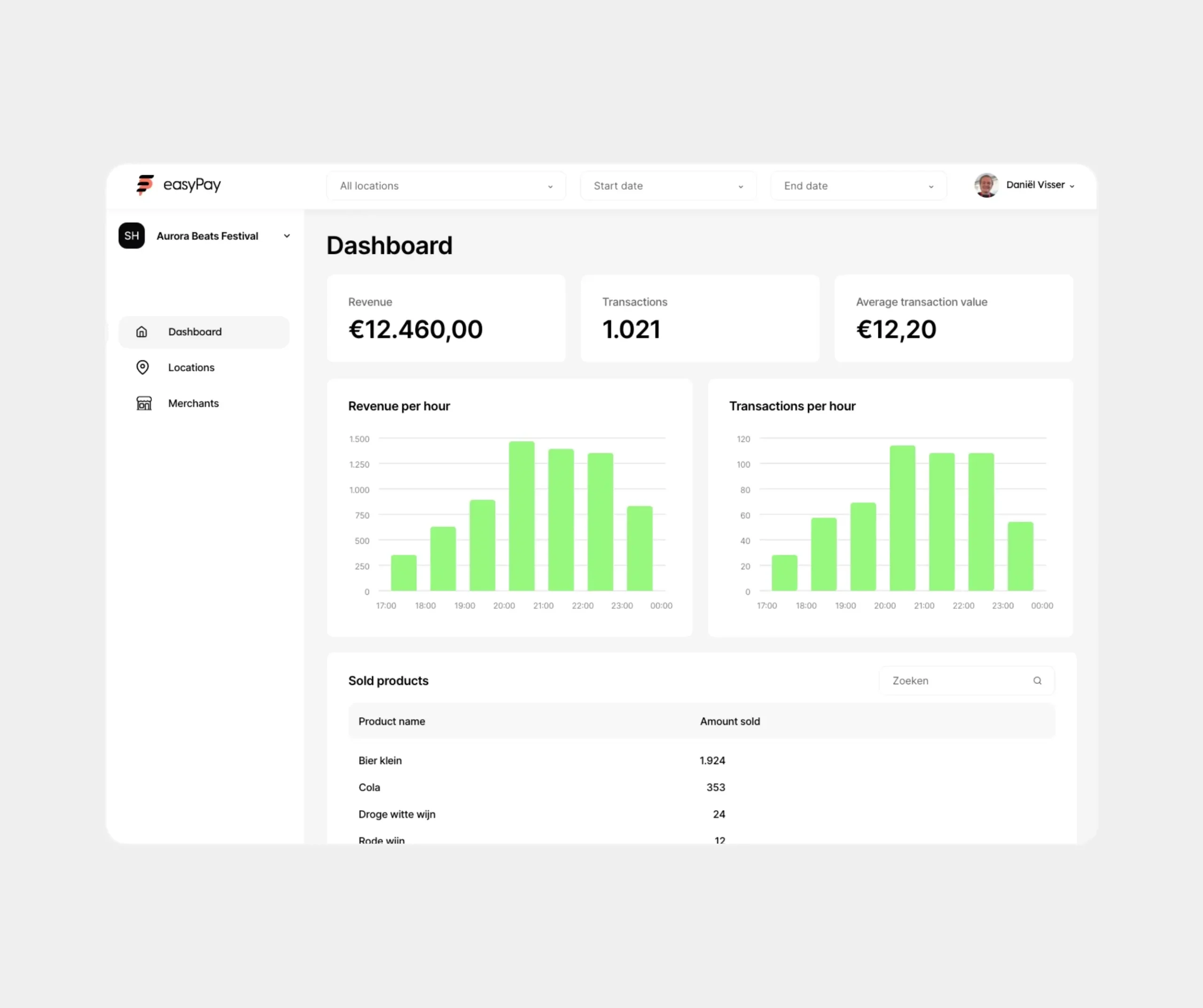 Bekijk live hoeveel er verkocht is, waar pieken ontstaan en wat bezoekers doen. Zo optimaliseer je je personeelsinzet en voorkom je vertragingen.